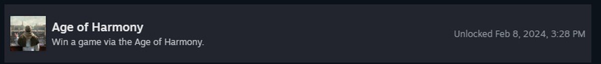 Также в игре будут ачивки за победы за достижение победных условий в тех эпохах, где они есть. Для этого не важно, кто именно привёл мир в эту эру.
