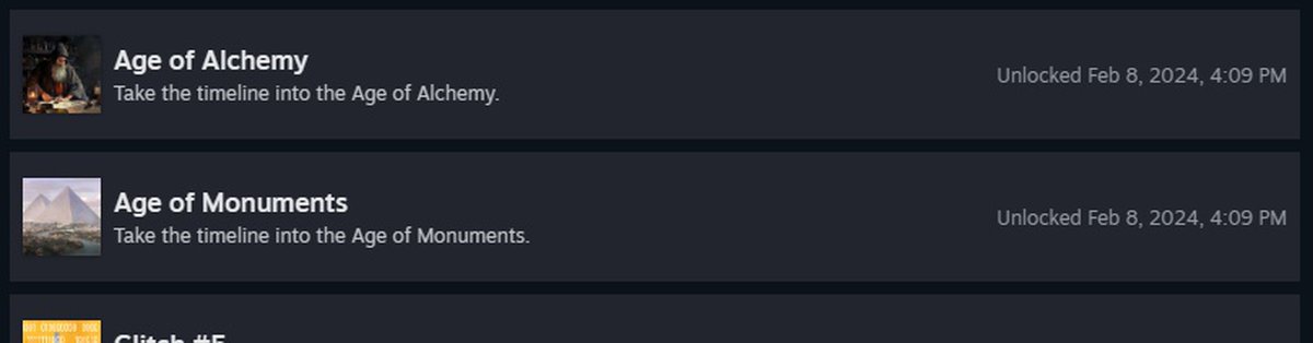 Достижения в игре будут разных типов. В одном потребуется привести мир в определённую альтернативно-историческую эпоху. Т.е. важно именно выполнить условие открытия эры, и перейти раньше всех. Стоит помнить, кто переходит первым, задаёт направление остальным.