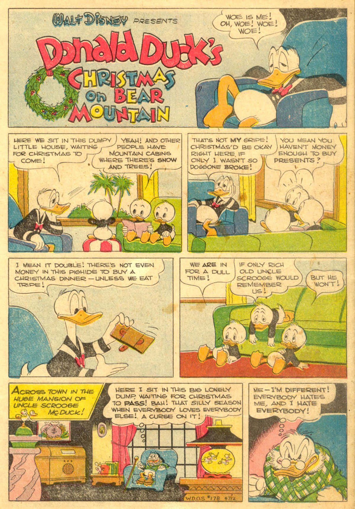 В 1947 году в одном из сюжетов диснеевского комикса Four Color Comics #178, а именно в Christmas on Bear Mountain, дебютировал антропоморфный селезень-миллиардер Скрудж Макдак. Он полюбился аудитории, став в последствии даже одним из главных героев мультсериала «Утиные истории».