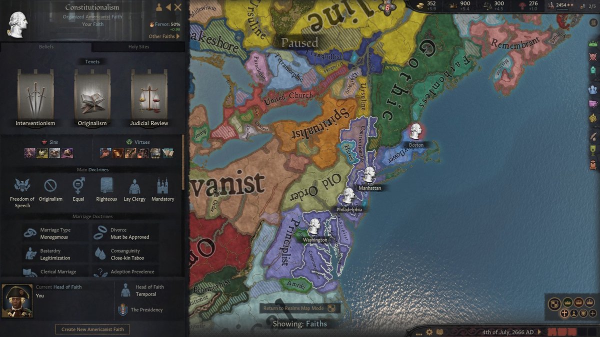 - Император Священного Колумбийского Содружества заявляет о своем происхождении из старой Америки, хотя американисты считают, что только их религиозные лидеры могут действительно утверждать подобное.