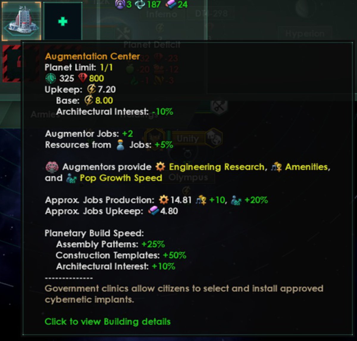Сооружение центр аугментации - основа исследования и разработки во время инцидента, оно останется после решения инцидента и будет усиливать кибернетические импланты на своей планете.