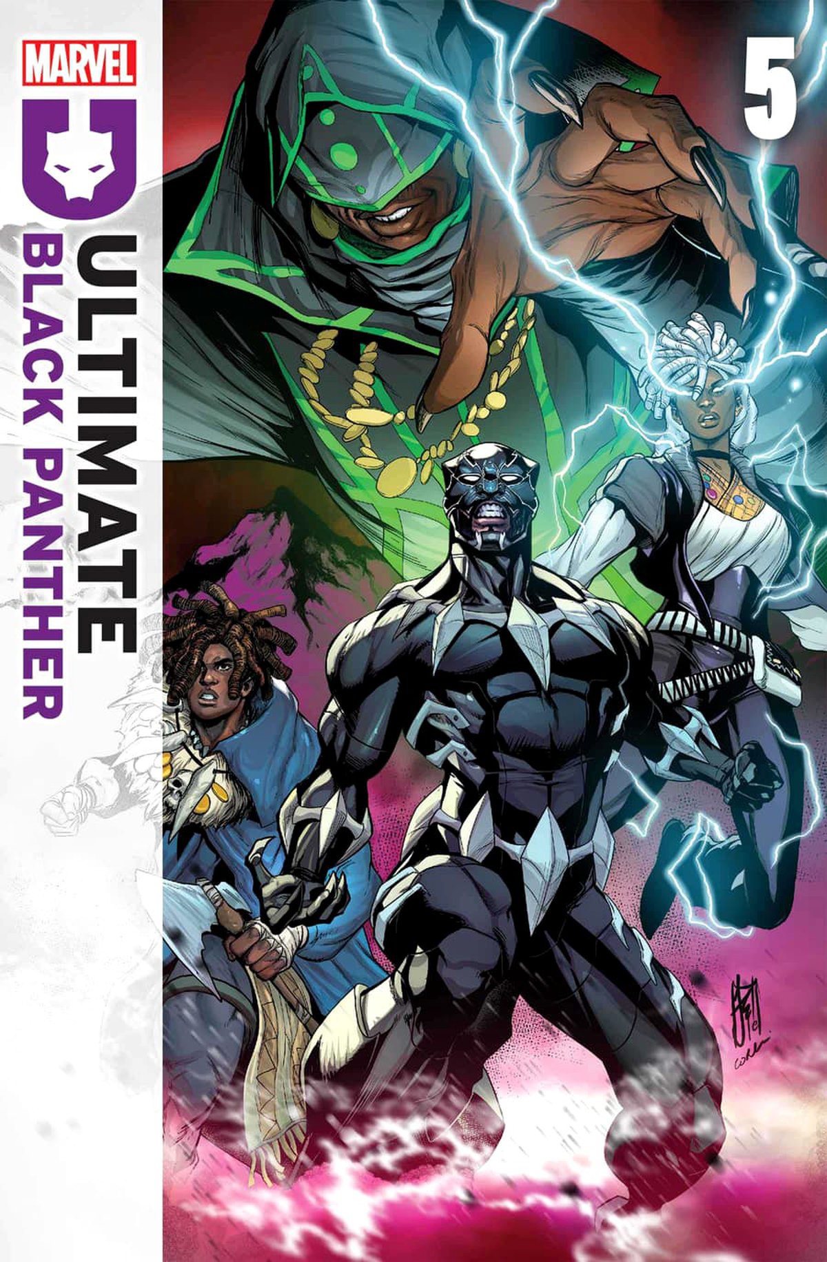 Последний из объявленных июньских алтимейтских комиксов Ultimate Black Panther #5. Судя по всему, до этого произойдёт в Ваканде переворот. Т'Чалла должен вернуть себе трон, а помогут ему Гроза и Киллмонгер. Однако Воду-Хан, мистическая ветвь Дора Милаж, готовит протагонисту не лучший приём. Ожидается духовное путешествие.