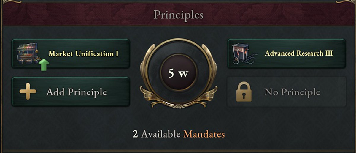 При накоплении достаточного кол-ва очков, можно будет внести новый принцип или поднять уровень существующего.