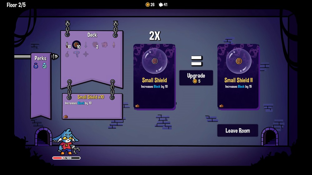 Также будут противные ребята, которые травят, лечатся, вешают щиты на себя, подрываются или повышают атаку себе с каждым ходом. Босс на втором этаже, например, стакает себе щиты. У меня урона не хватало, чтобы их сбивать и защищаться одновременно. Благо были ядовитые приблуды, и я его пересидел.