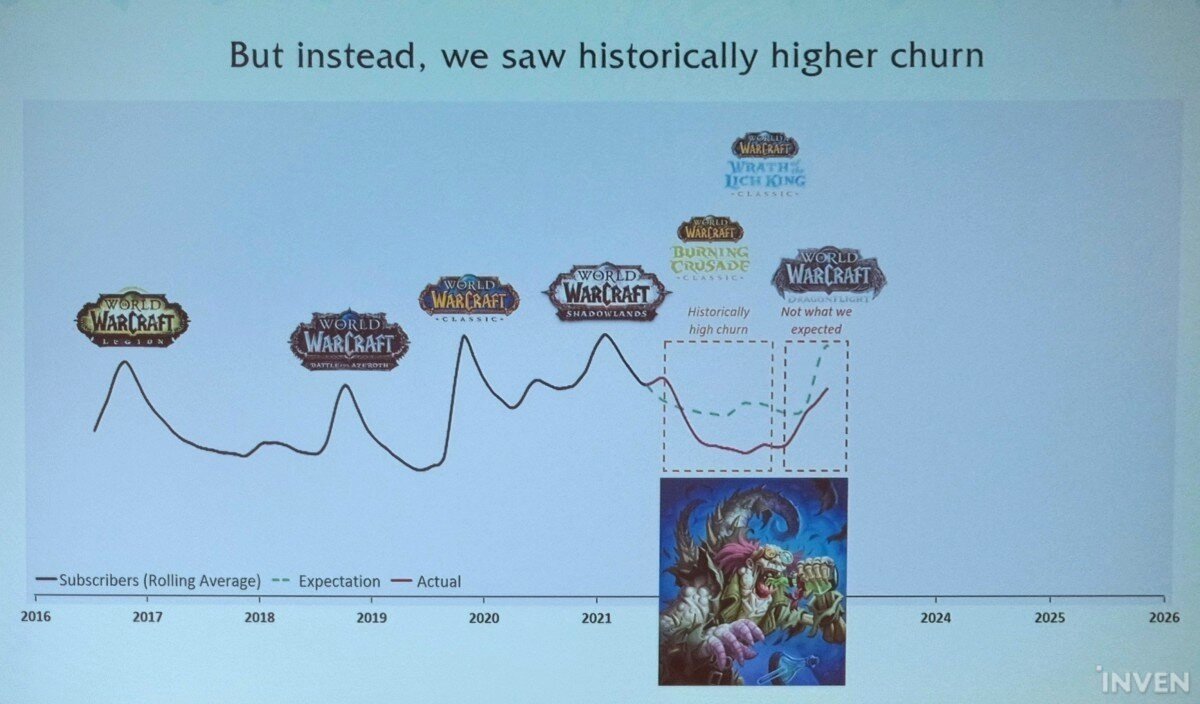 С этим, признают разработчики, возникли проблемы. После выхода дополнения Shadowlands в World of Warcraft начал наблюдаться сильный отток аудитории: число подписчиков упало гораздо сильнее, чем ожидалось.