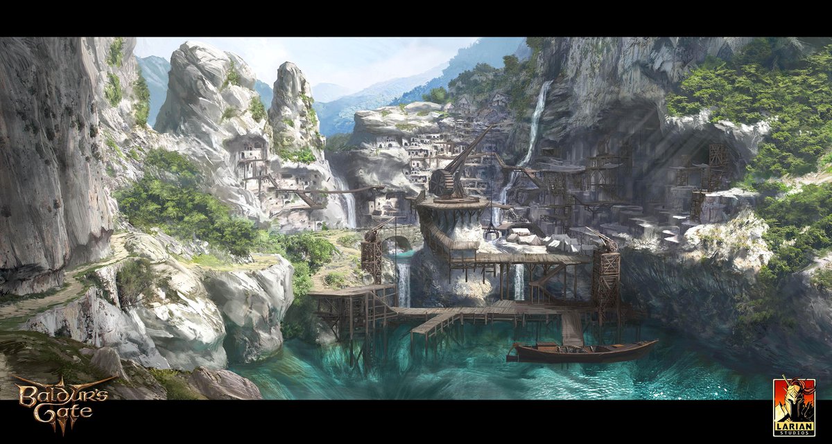 Кроме того, разработчики продемонстрировали одну из вырезанных локаций. В какой-то момент планировалось, что игроки смогут исследовать прибрежную деревню гномов.