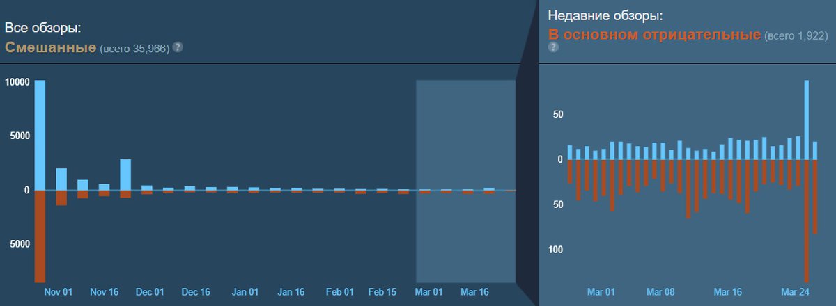 Особенно хорошо это заметно на второй день после выхода DLC. За день игра получила 20 положительных и 82 отрицательных отзывов — разница в 4 раза.