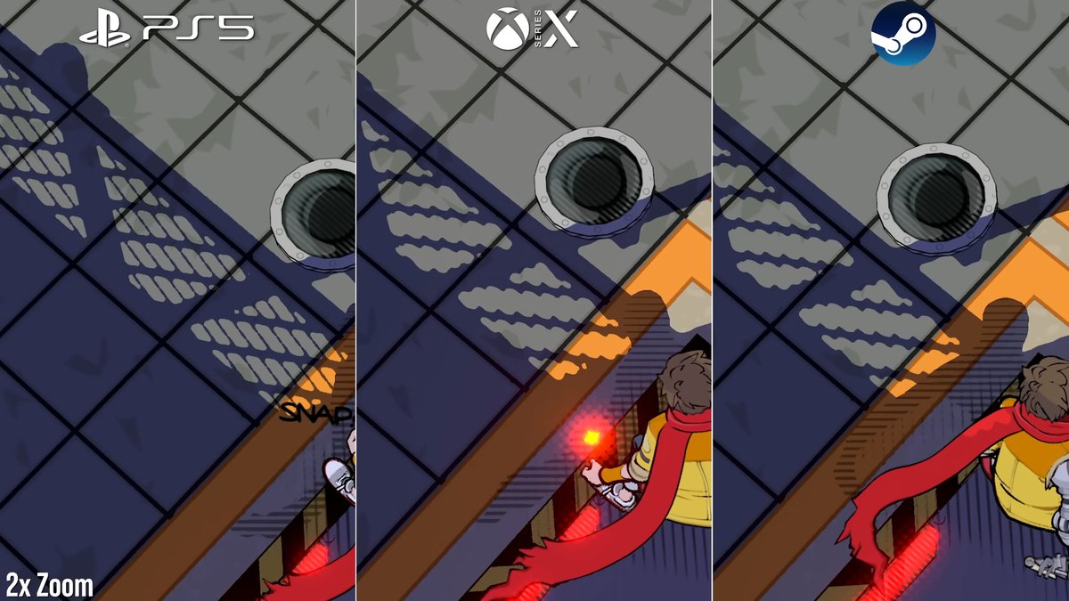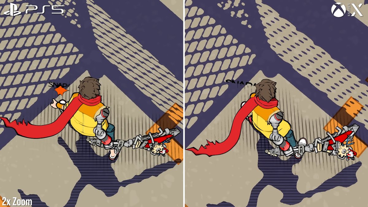 Большинство эффектов выглядят одинаково на обеих консолях, но по какой-то причине разработчики порта Hi-Fi Rush для PlayStation 5 повысили качество теней на этой платформе. Особенно хорошо это заметно по теням сложных объектов.