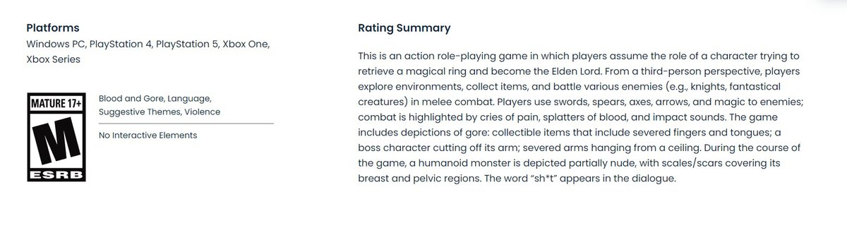 Взрослый рейтинг выдан Shadow of the Erdtree из-за насилия, нецензурной лексики, кровавых и непристойных сцен. Видимо, вопросы агентства вызвал следующий монстр.