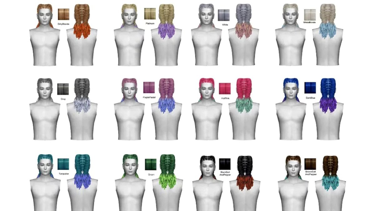 Новые прически предназначены для персонажей-женщин, каждая прическа поддерживает 24 варианта цвета. Вот пара примеров каждой прически со случайными цветами.