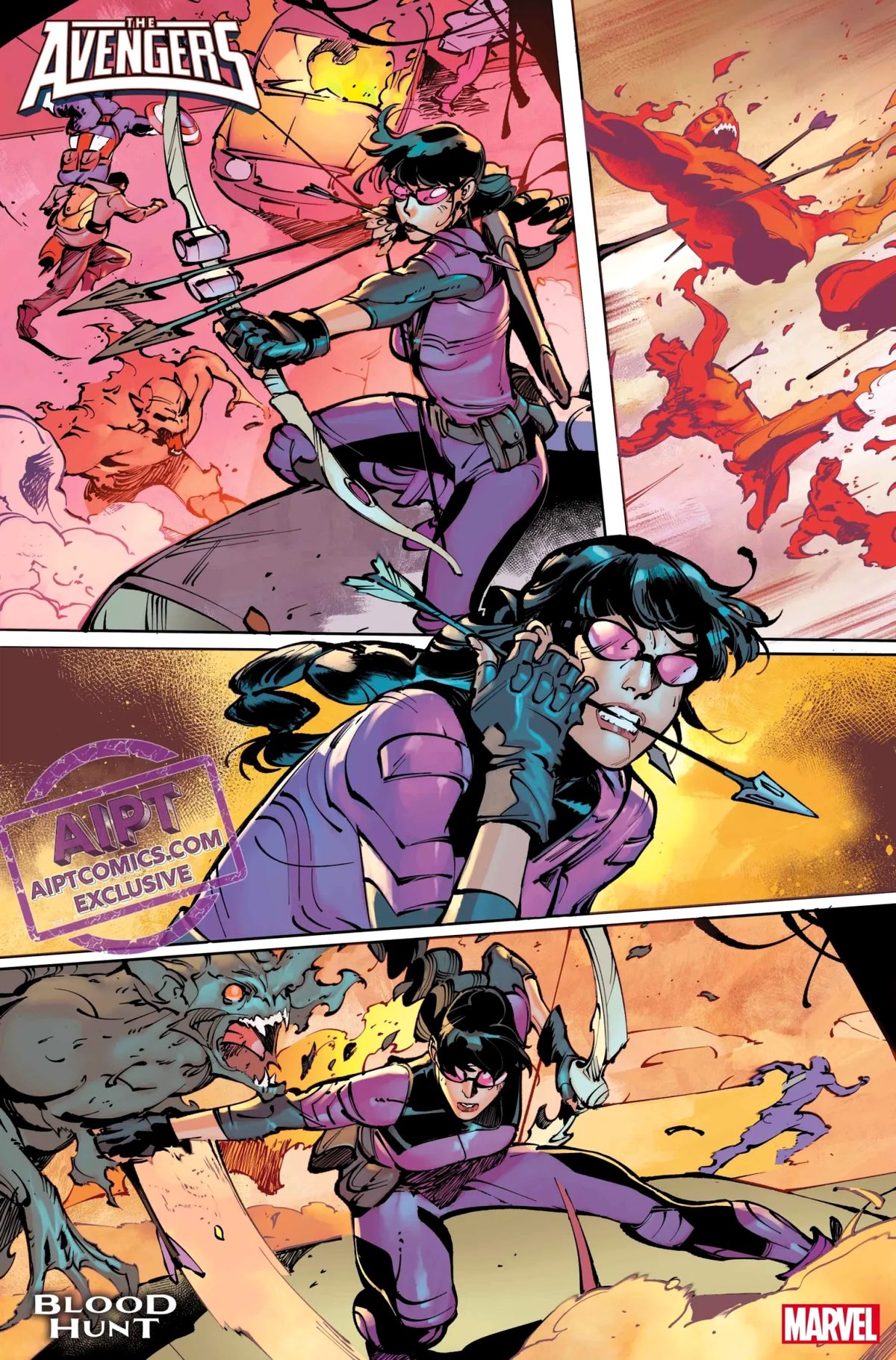 Джед ничего про Лунного рыцаря не сказал, и в последнем выпуске его серии, который тоже вышел на этой неделе, не было прямого пролога к событию. Однако на превью Blood Hunt #1 представлены в том числе персонажи из онгоинга Vengeance of the Moon Knight. На 3-ей и 4-ой картинках ниже мы видим Тигру и Охотничью луну, также там из кое-кого извергается тьма, скрывающая луну и солнце. Затем вампиры нападают.