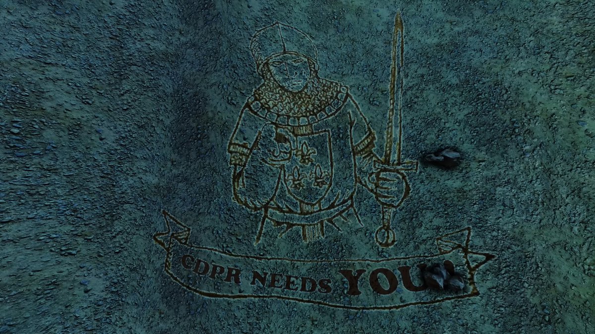 Во время исследования Новиграда энтузиаст нашел скалу с приветом от разработчиков. На скале изображен темерский солдат с надписью CDPR Needs You — изображение пародирует объявления о призыве на службу времен Второй мировой.