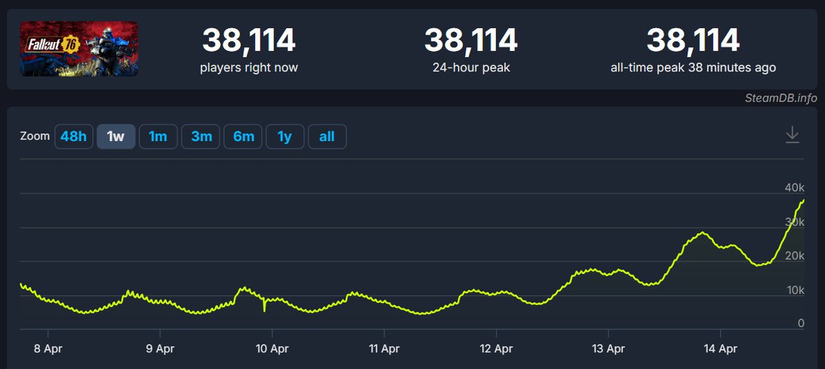 Fallout 76, долго считавшаяся самой неудачной частью серии, на фоне выхода шоу установила новый рекорд по онлайну в Steam. Вечером 14 апреля в игре одновременно находилось свыше 38 тысяч человек.