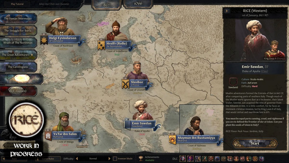 К новым персонажам. В 867 году добавится Саудан эмир Бари, он известен, как человек, пытавшийся захватить регион. Ведь Бари - это город на юге Италии.