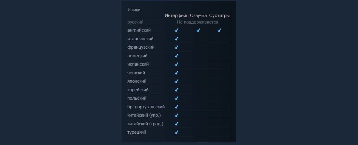 Примечательно, что поддержка языков все еще указана некорректно. На странице Kingdom Come Deliverance 2 упоминается перевод только интерфейса, субтитры и озвучка заявлены лишь для английского.
