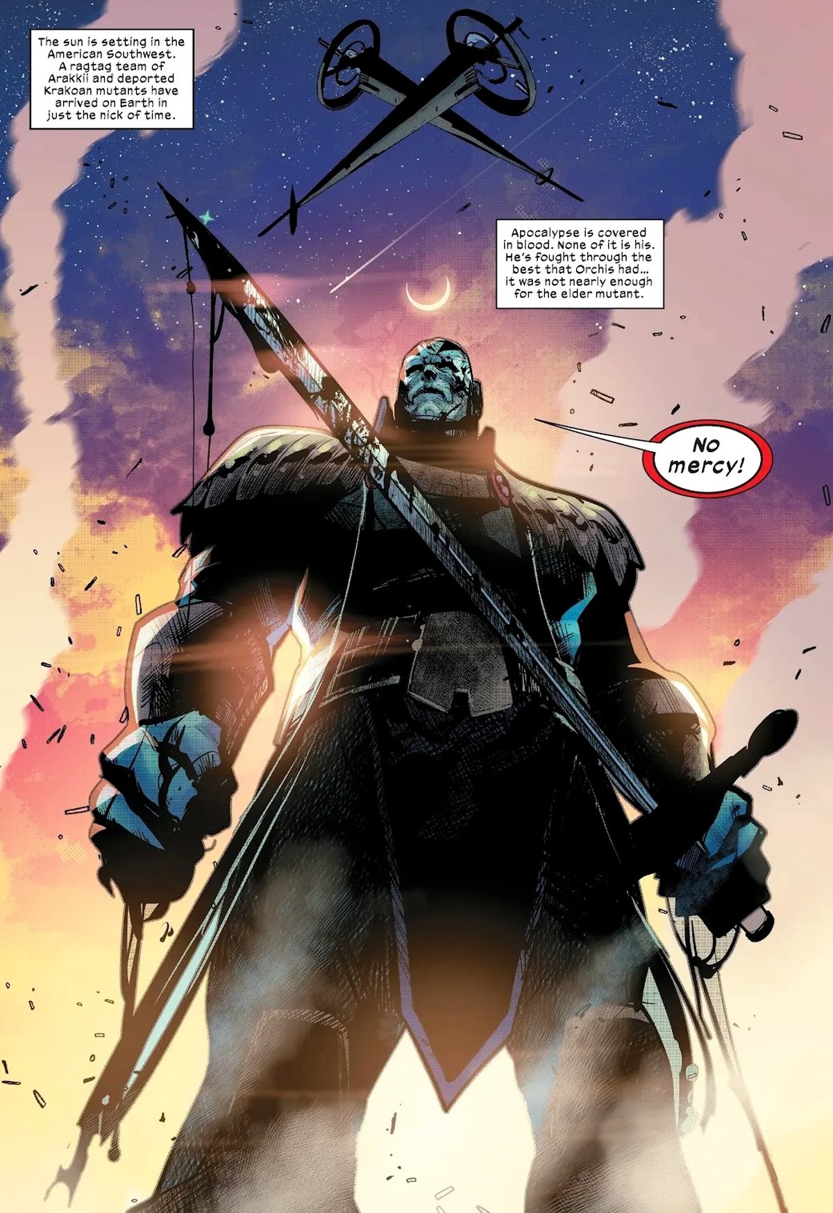 Оказались ли Orchis там, где находятся сейчас? Возможно, нет. Но если бы Апокалипсис публично убил их на улицах год назад, это, вероятно, стало бы еще одной проблемой для Людей-Икс. Да, он действительно сильный чувак, и мне кажется, что если бы он не ушёл, он был бы в другом положении. Но также всё было бы по-другому. Я не могу представить, чтобы Апокалипсис сидел в Тихом Совете и позволял некоторым вещам происходить, но я также думаю, что его решения были бы решениями, которые хорошие Люди-Икс — и, надеюсь, читатели — не одобрили бы.