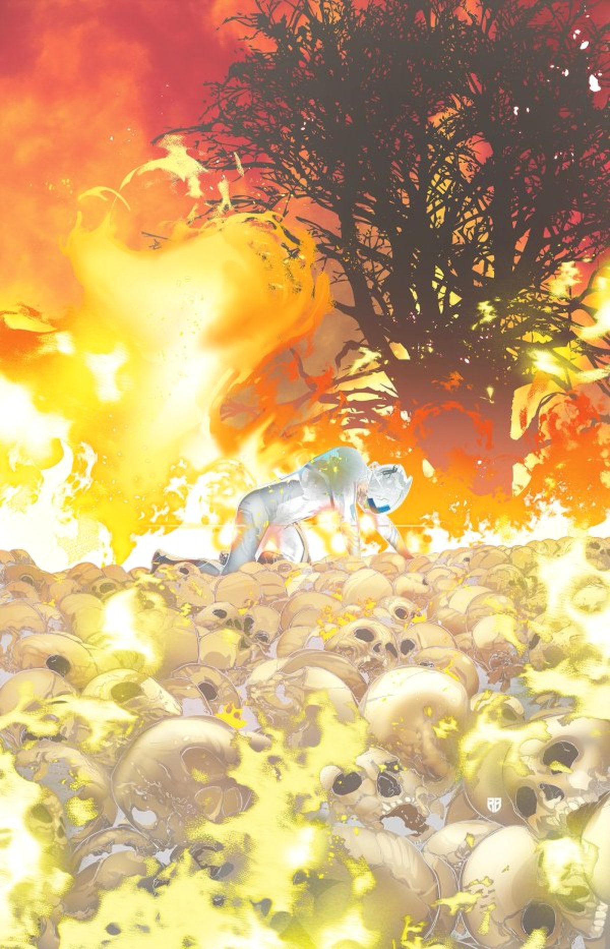 Джордан: Да и выглядит комикс потрясающе. Нам, конечно, было грустно потерять Р. Б. Сильву в последнем выпуске, но тот факт, что Лучано смог сделать его для нас, – это находка. Люди будут падать со стульев, когда увидят, что он делает в этом выпуске. Он потрясающий художник, и он уже сделал многое для нас и для других людей. Но эта работа следующего уровня.