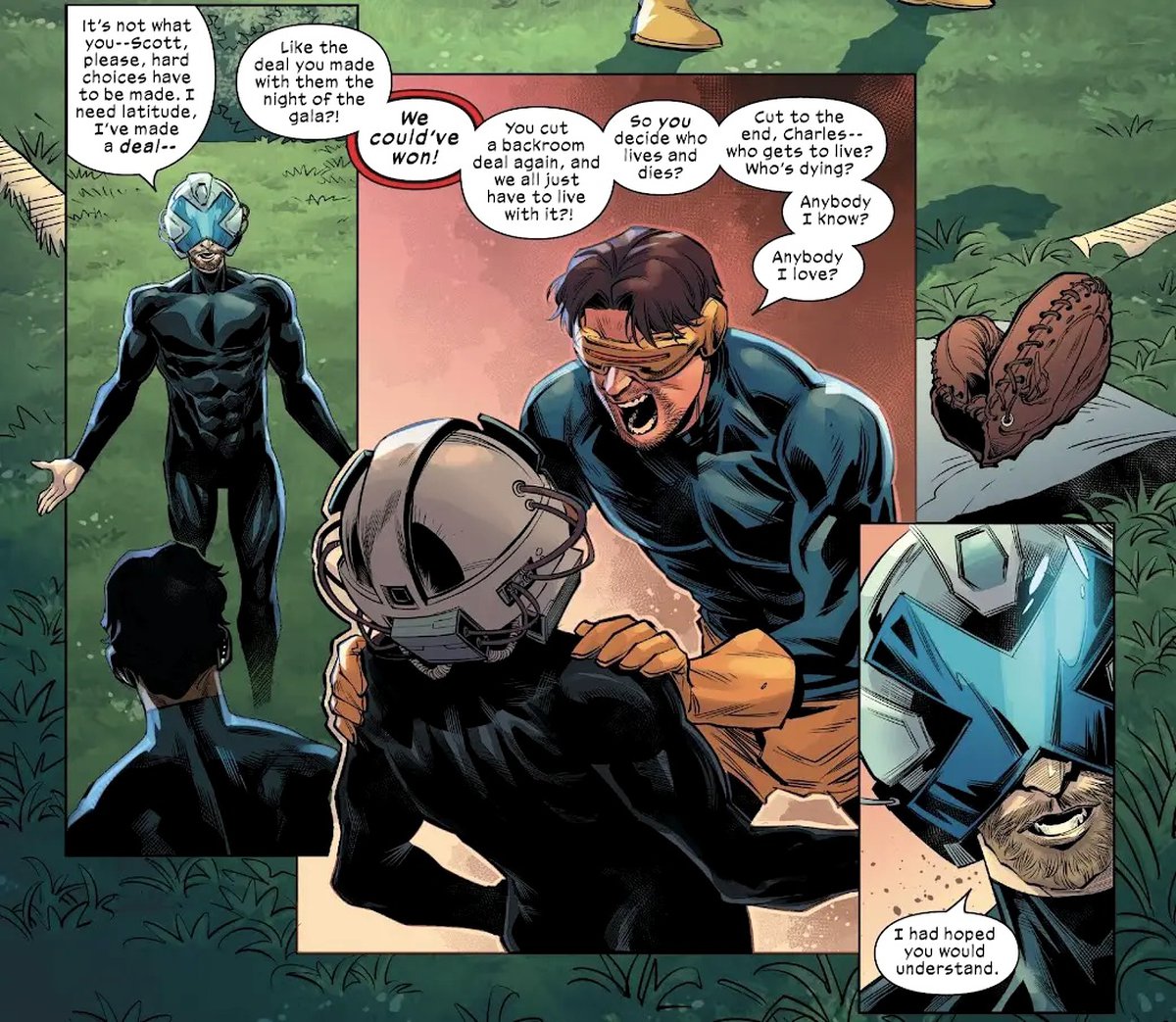 Он взрослый в комнате, и ему приходится принимать решения. Самый большой из них отправлял всех в порталы во время Hellfire Gala. Был ли это правильный выбор? Он считал, что это правильный выбор. Он сделал это, чтобы спасти людей, а не причинить им вред. Могли ли Люди-Икс просто сразиться и победить? Мы никогда не узнаем, потому что он принял решение за них.
