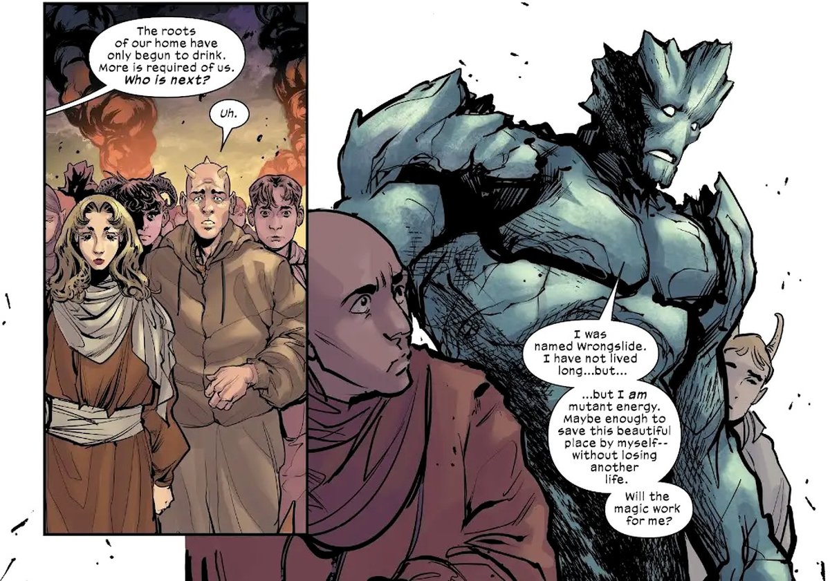 Что касается настоящего возвращения Рокслайда, то между созданием Ронгслайда и теперь с воскрешением произошло действительно большое и важное событие: окончание The Trial of Magneto и создание Комнаты ожидания. Она меняет способ воскрешения, или, по крайней мере, меняет то, как мутанты могут быть воскрешены — отсюда и возрождение Буревестника. Так что это возможно.