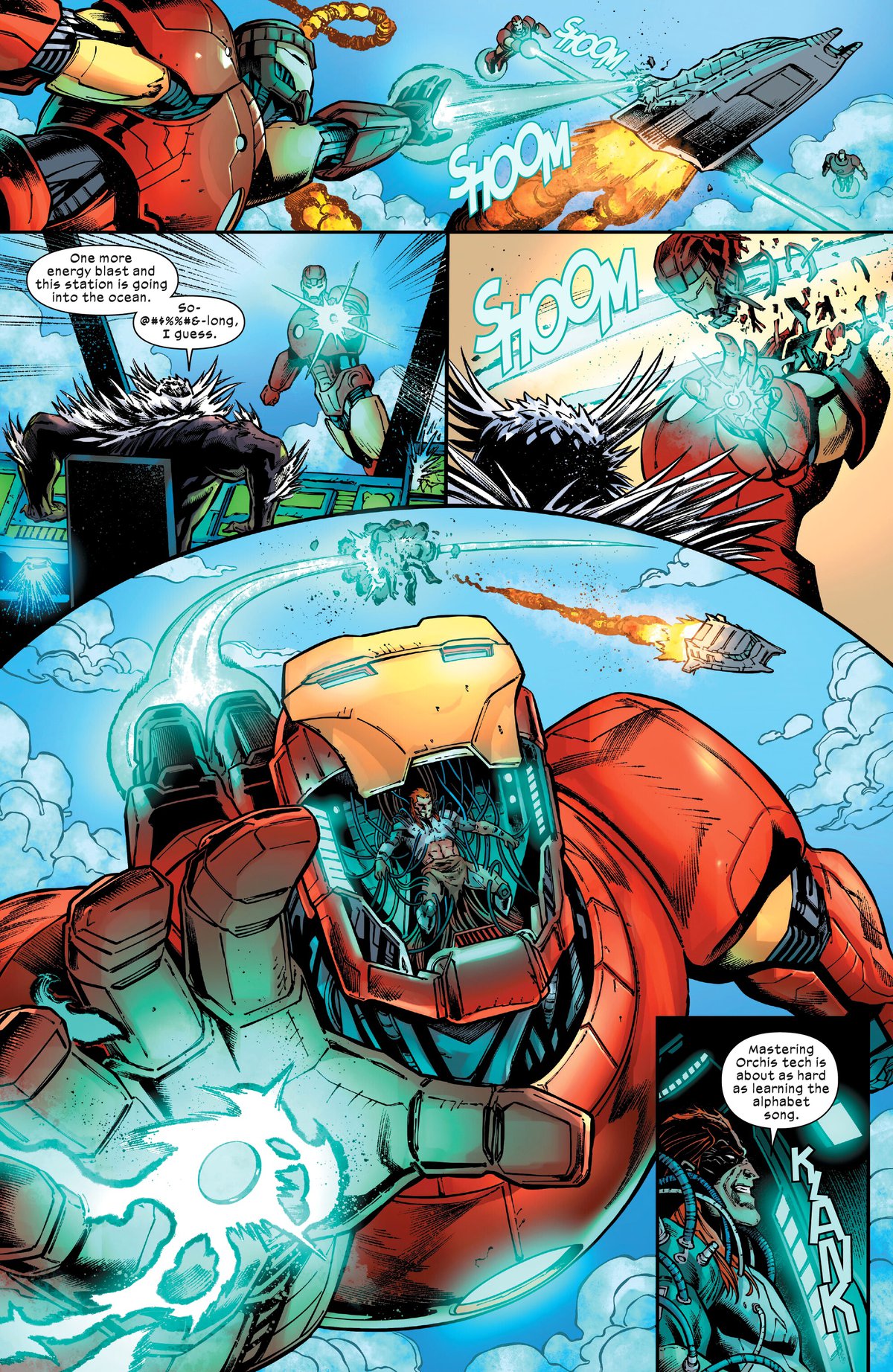 К тому же Грейдон обрёл какие-то необычные силы. Они, например, позволяют ему сесть за руль сентинела, построенного с помощью технологий Старка. Контролировать гигантского робота, это же как алфавит выучить, со слов самого Грейдона.