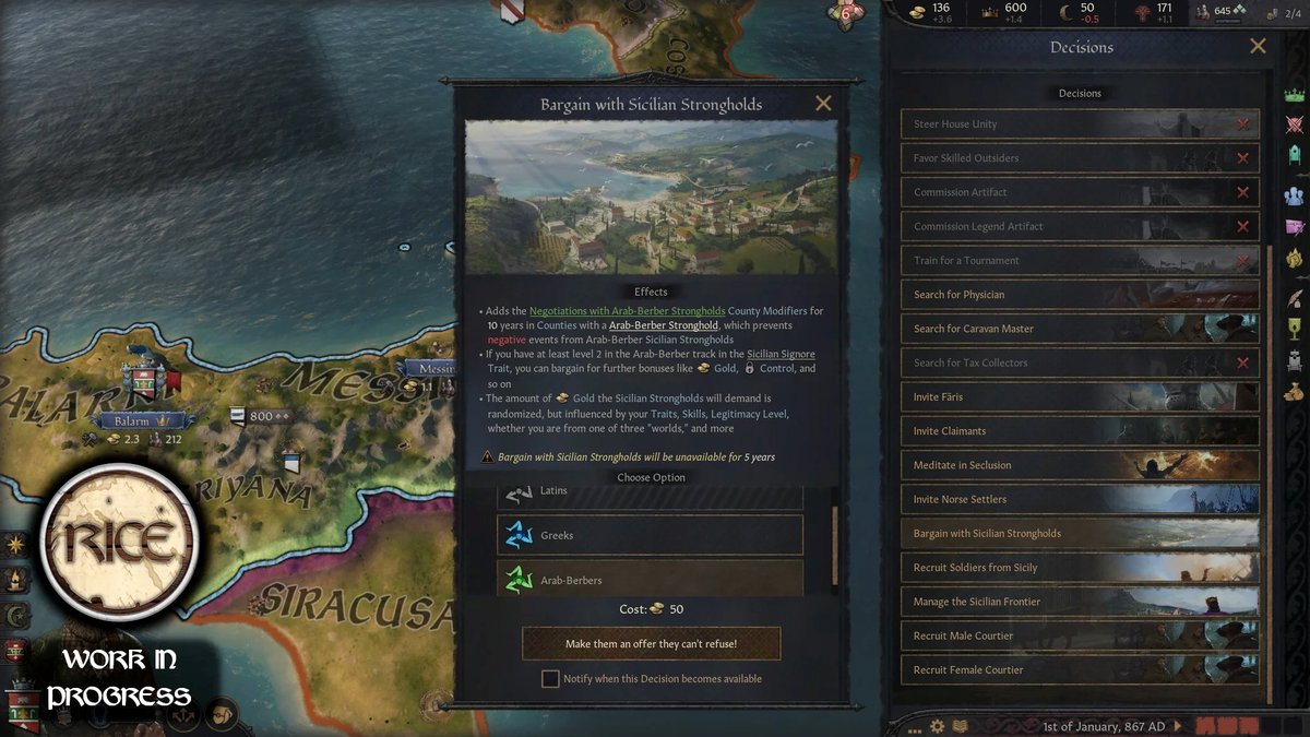 Борьба за Сицилию в грядущем наборе RICE для Crusader Kings 3. Часть 2