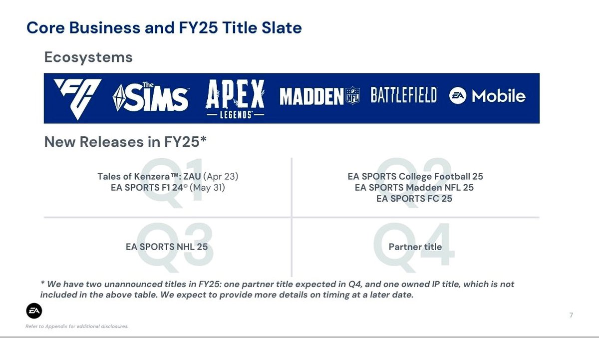 Electronic Arts готовит к выпуску две игры, следует из последнего отчета компании. Одна игра это проект компании в собственной вселенной, другая — партнерский проект, то есть игра в мире, не принадлежащем EA.