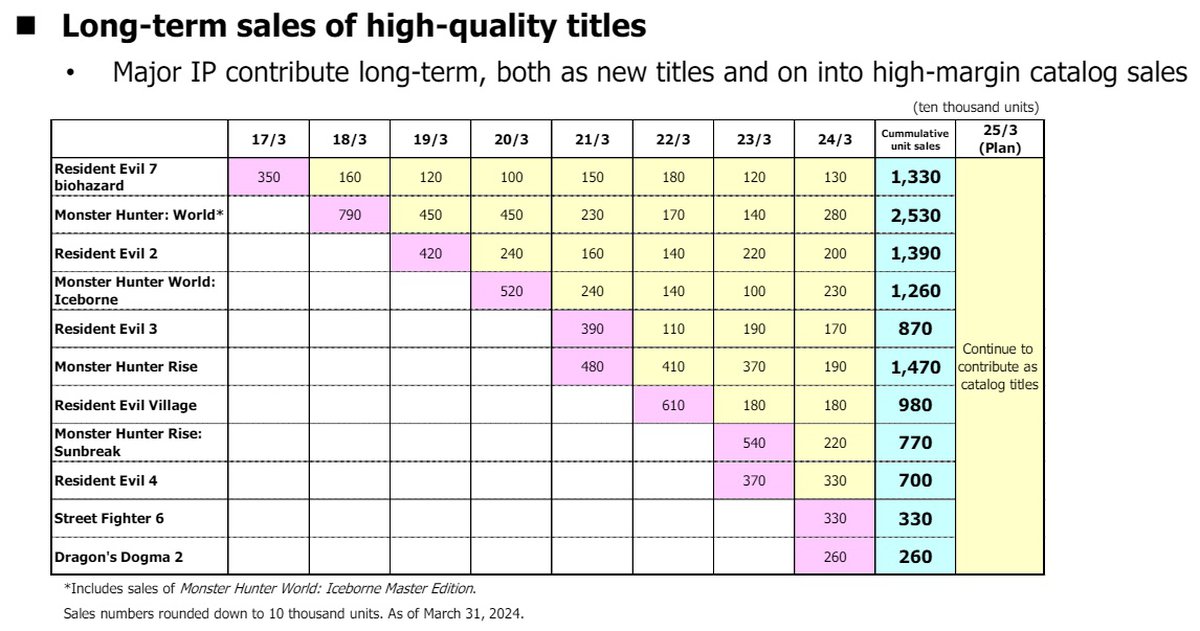 Продажи всей серии Monster Hunter превышают 100 миллионов копий. Следующая часть франшизы выйдет в 2025 году, о продолжении серии Resident Evil пока не сообщалось.