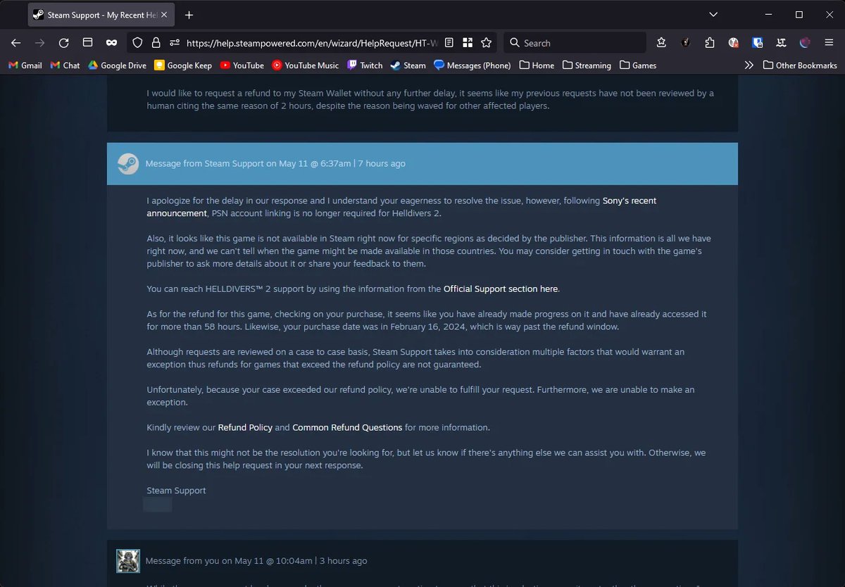 Судя по переписке с поддержкой Steam, опубликованной одним из игроков, инициатива по остановке продаж Helldivers 2 исходила именно от Sony. Отчасти поэтому техподдержка Steam отказалась возвращать деньги за Helldivers 2.