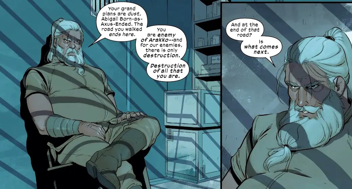 AIPT: Давайте начнем с нескольких вопросов об X-Men Red Эла Юинга. Поклонники Исаак Платицкий, Муген и Синистер спросили: в X-Men Red #10 откуда Король-Рыбак узнал полное имя Эбигейл Брэнд? И как он нашел ее базу? Как Вы думаете, Эл?