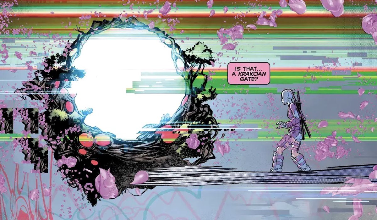На мой взгляд, это все время было связано с её силой сдвига по фазе. Дело в том, что её фазовая способность разрушает технологии. Кракоанские врата — это уникальная технология, которая позволяет вещам перемещаться или заходить в те места, куда им не положено. И её способности схожи. Поскольку она разрушает технологии, я думаю, что было ясно, что это просто своего рода обратная связь, связанная с силами. А потом, когда ворота поломались, и вдруг они ни у кого не работали, они начали работать для неё.