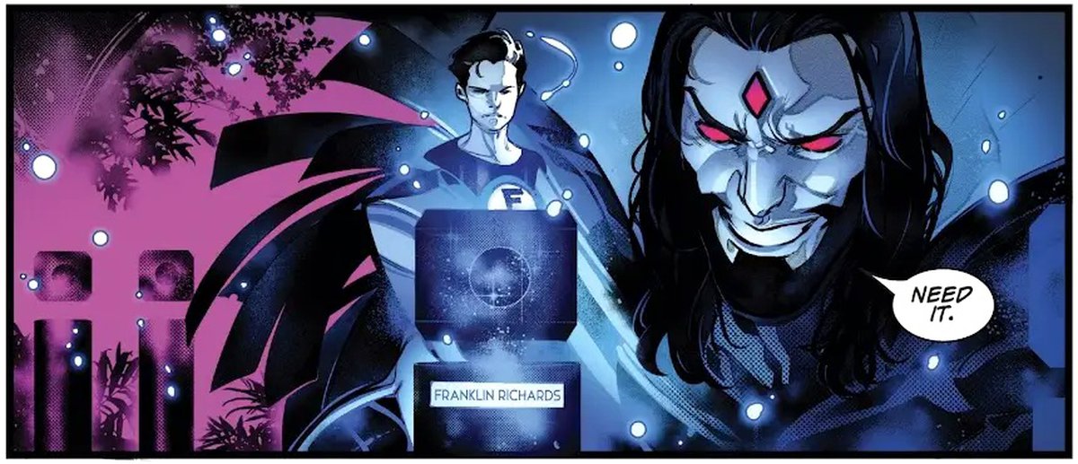 Ранее мы упоминали комикс Incoming — был другой кусочек там, если вы помните. Мистер Синистер говорил о том факте, что Франклин — единственный мутант омега-уровня, ДНК которого у него еще нет, и о том, как он его хочет. Так что, 1 миллион процентов.