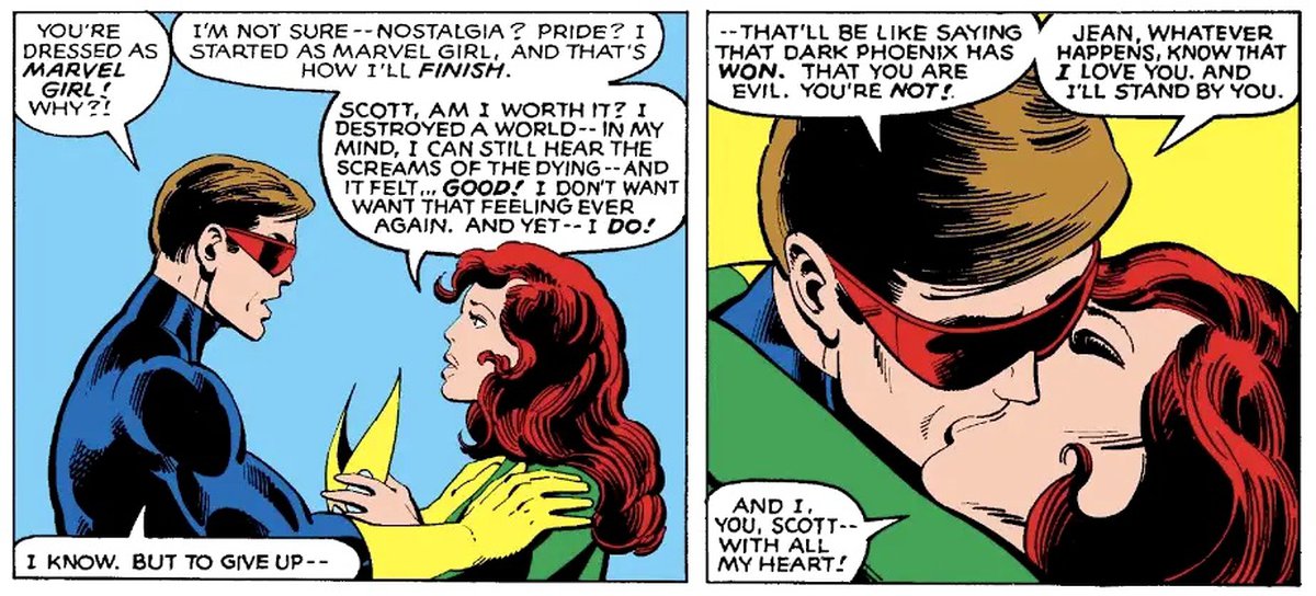 Итак, он ссылался на то, что она отстранилась от Феникса и сказала: «Я - это я, когда я — Марвел Гёрл».