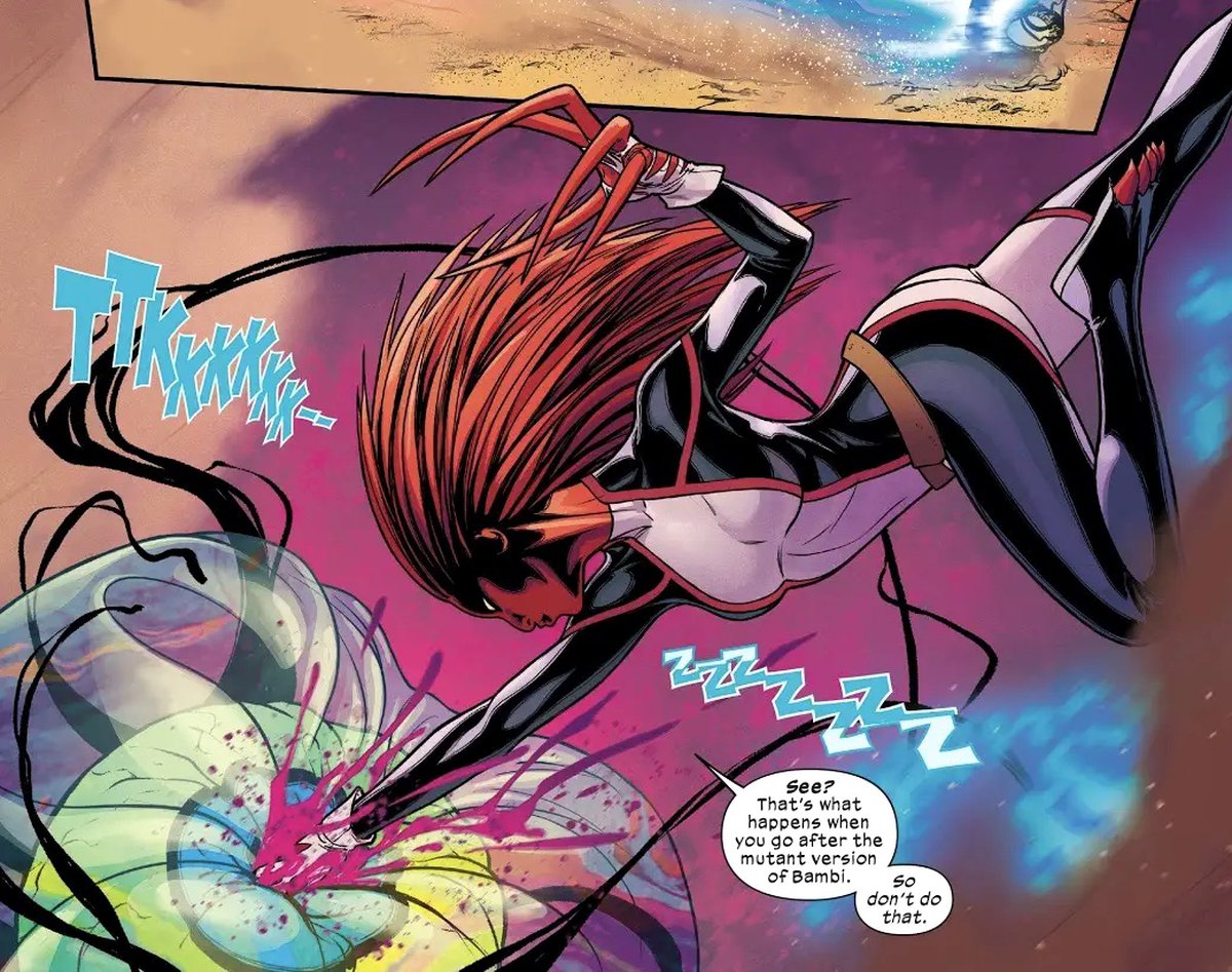 Я был почти уверен, что все это поймут, как только House of X #1 появится на полках. И хотя я не собираюсь спойлерить, я скажу: вернитесь назад и посмотрите на самый знаменитый момент, когда она надевала этот костюм. Это должно помочь.