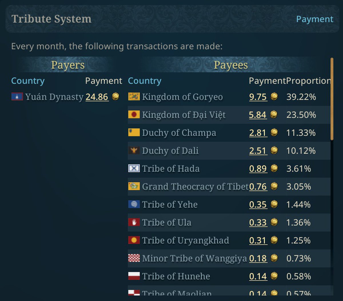 Будут в игре уникальные международные организации. Описано несколько примеров. Монголо-татарское иго - это особое объединение данников Монгольской империи или Золотой Орды, которые появились у неё после вторжения в Восточную Европу. Что интересно, один из правителей зависимых держав получит ярлык и будет должен собирать дань с остальных от имени хана.
