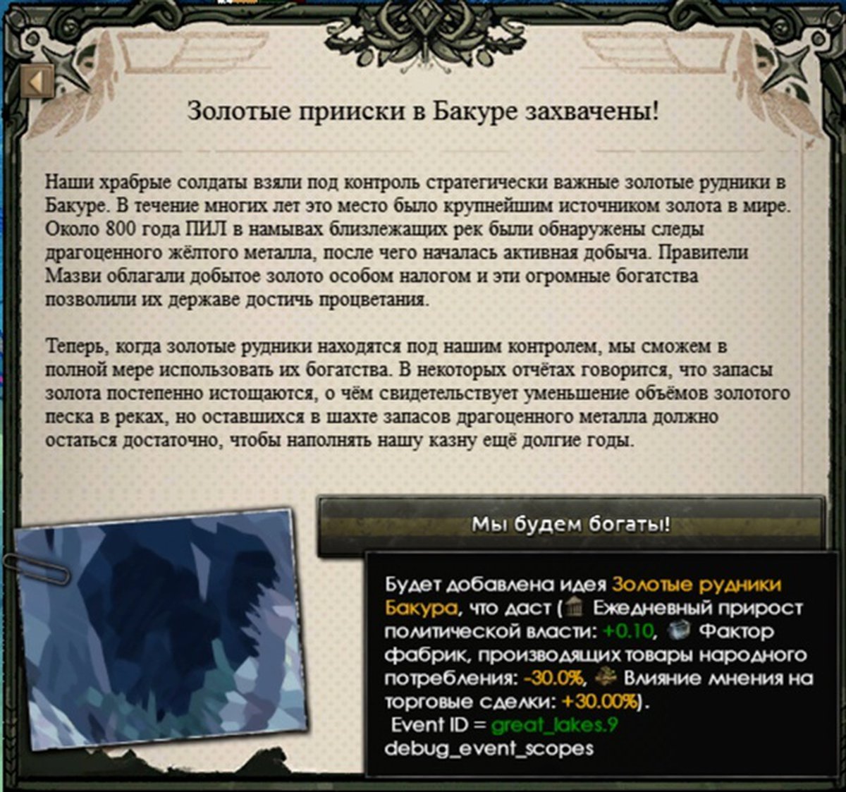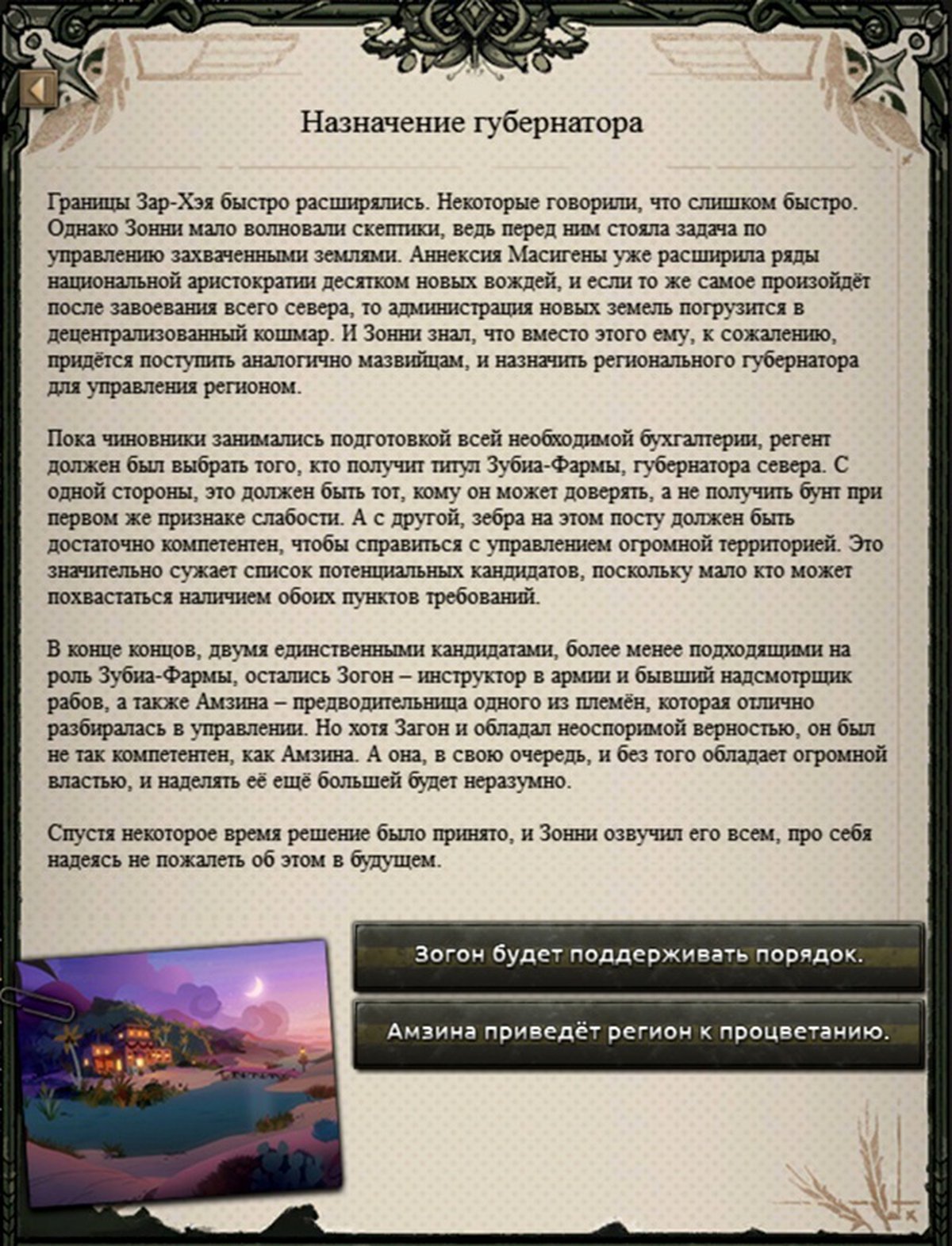 По мере завоевания новых территорий будут возникать разные события. Например, возникнет необходимость назначить губернатора. На выборе доступны две кандидатуры:
