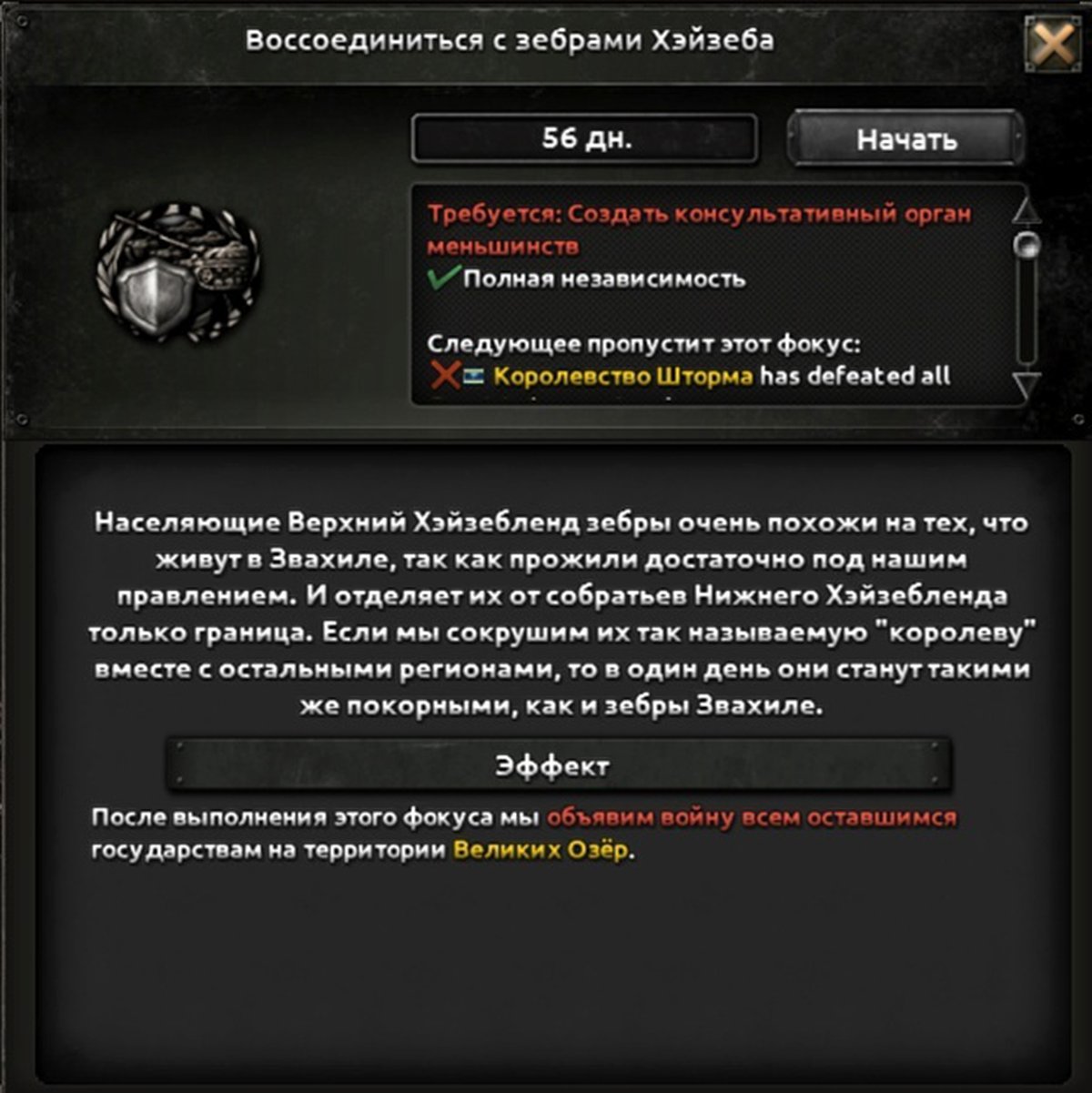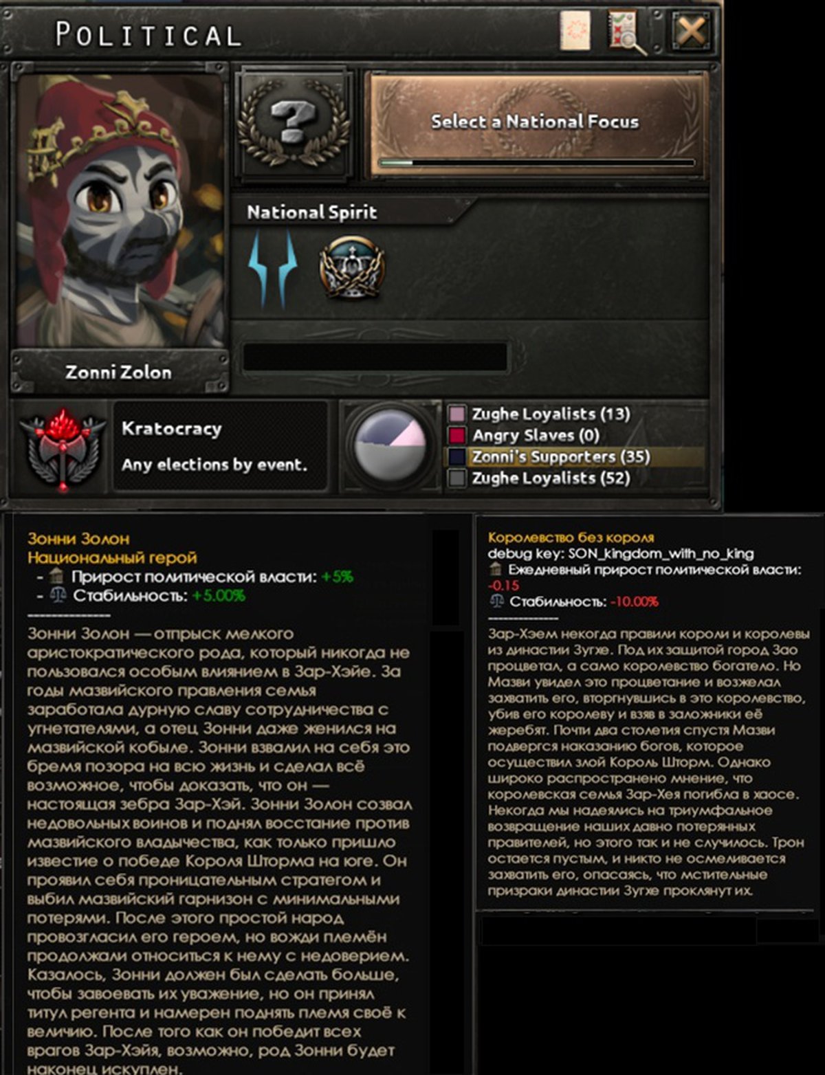 И это только начало. Далее можно будет выбрать новый путь и идеологию. Это может привести к гражданской войне, в которой надо победить, а потом уже пробовать силы в становлении гегемоном Южной Зебрики.