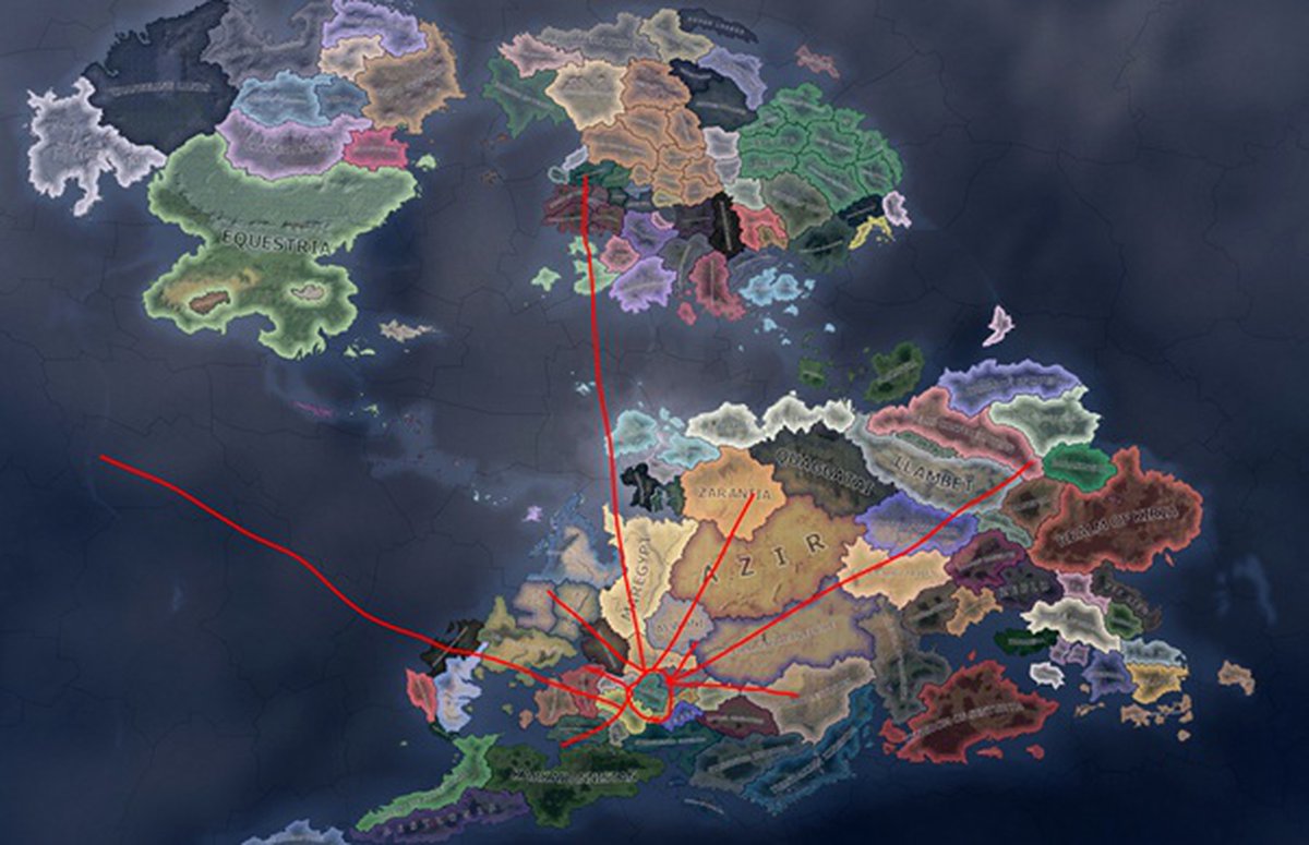 Начали с особенностей Королевства Зар-Хэй, это небольшое государство зебр, сумевшее вновь обрести независимость от бывшего гегемона Великих Озёр, Имперского Мазви, чьё государство рухнуло после того как Король Шторм наголову разбил его армию и разграбил столицу.