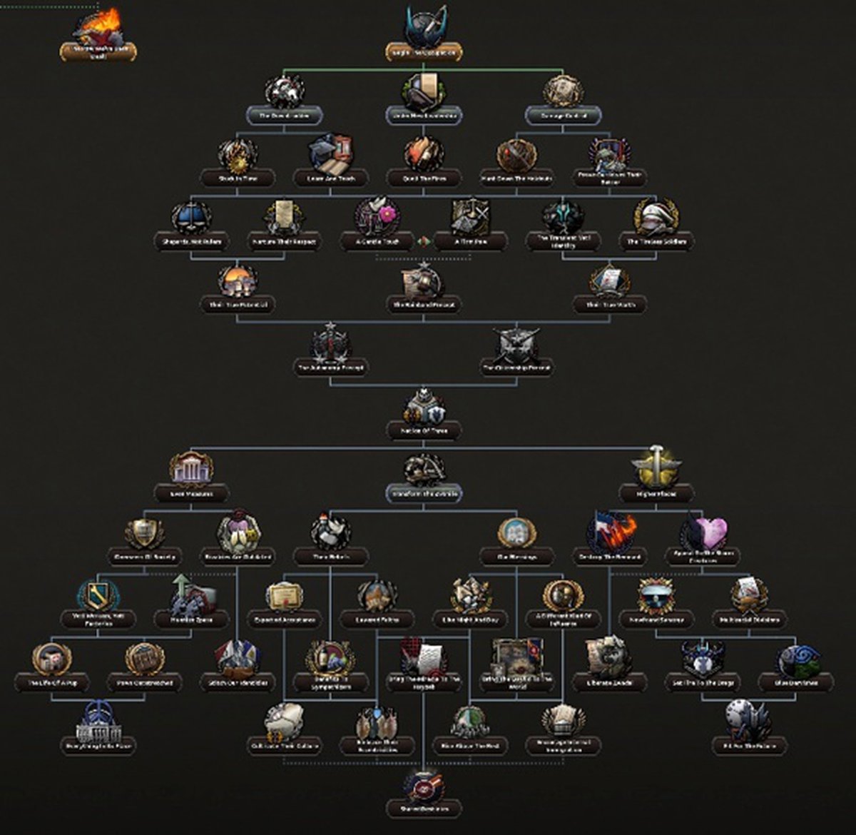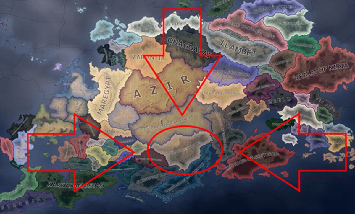 Cтартовое дерево фокусов Зар-Хэя посвящено объединению большей части бывших земель Имперского Мазви. Оно достаточно линейно. Скриншот сделан в низком качестве, чтобы не давать спойлеров.