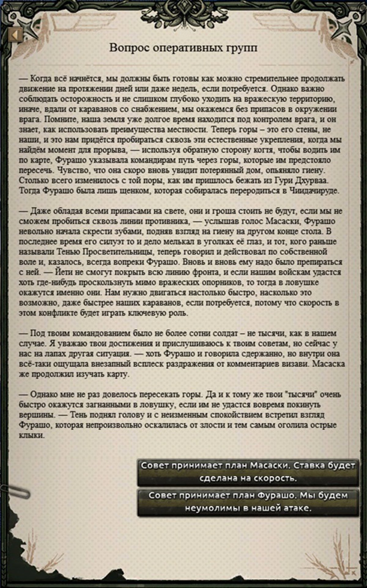 Впрочем, какая бы стратегия не была выбрана, вариант не освобождать земли не рассматривается. Дервиши пойдут в атаку по приказу матриарха, тем самым дав старт войне с Тандарией!