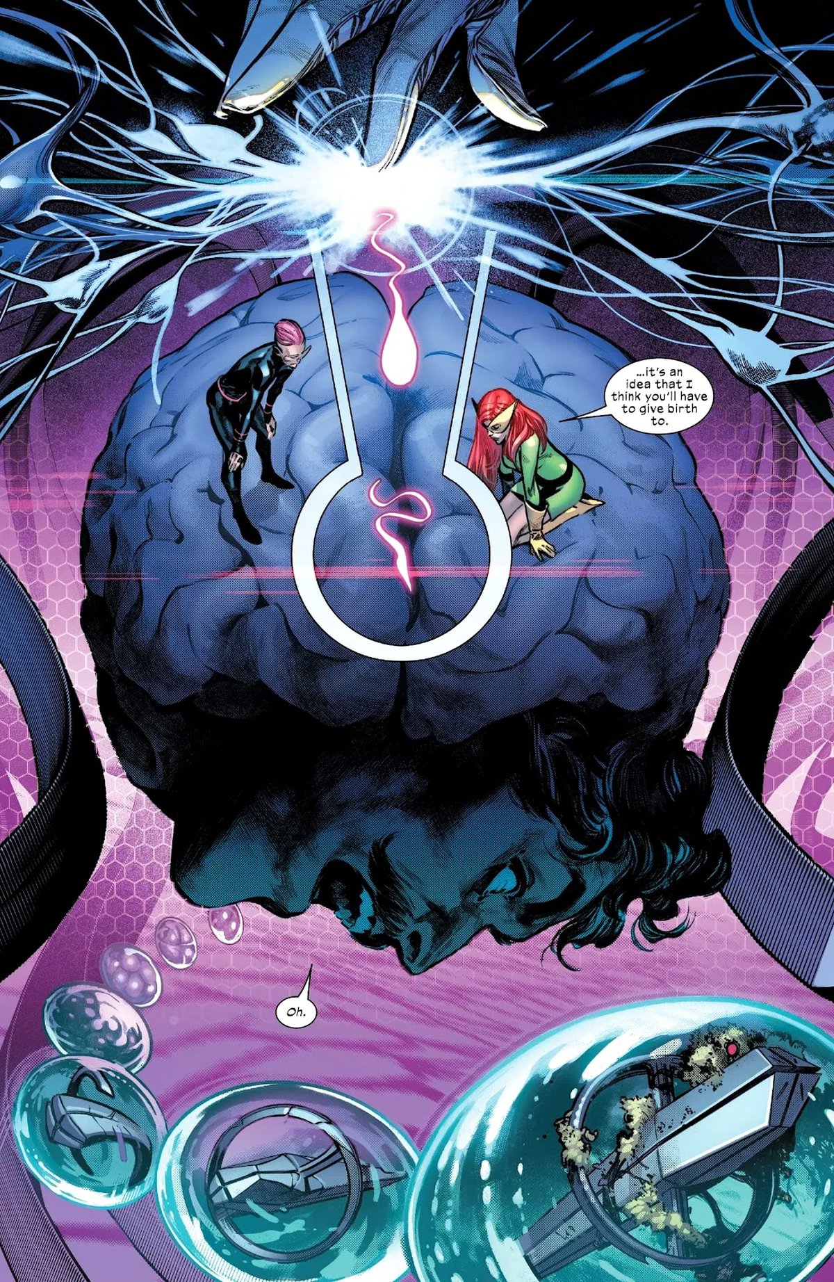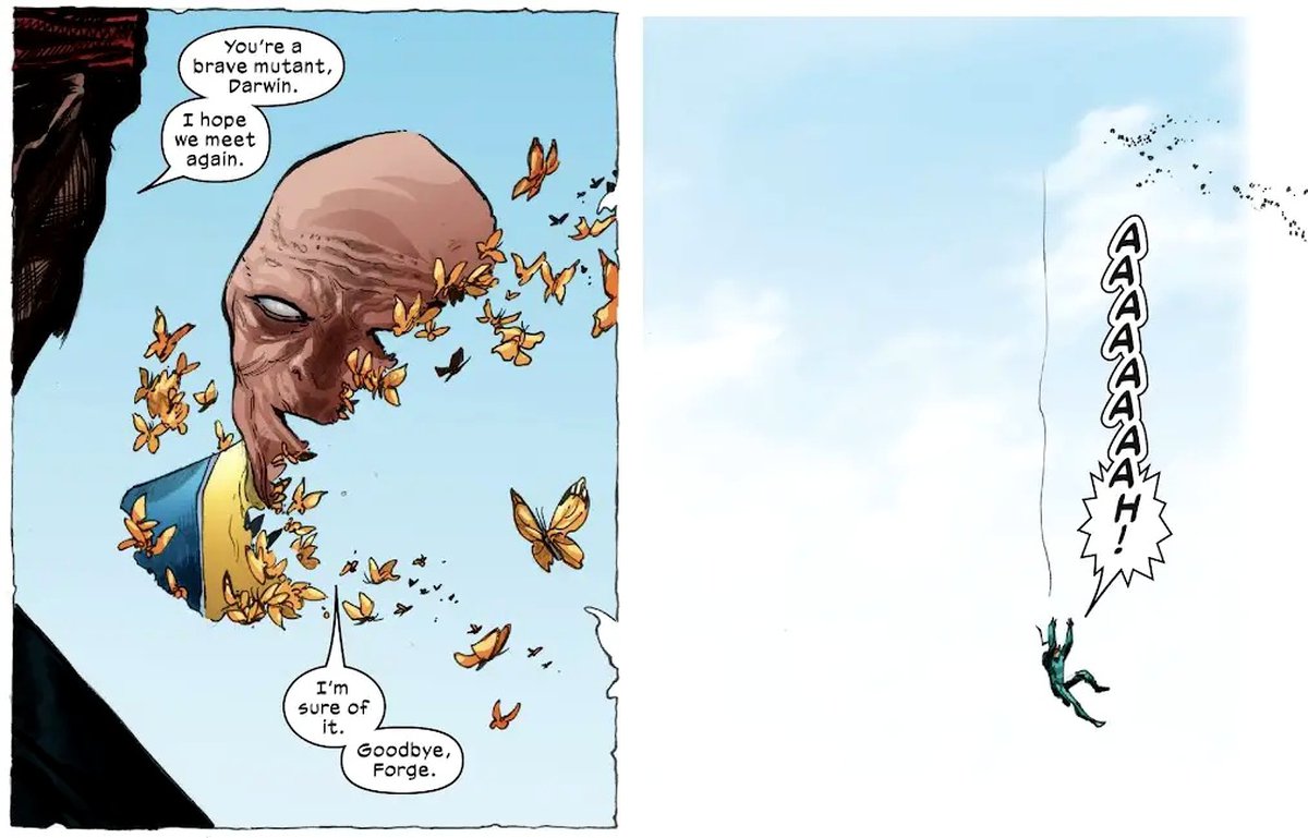 Это я просто рассуждаю. Но опять же, это ещё одно место, где открылась возможность для истории, и это была дверь, которую мы не открыли, и коридор, по которому не прошли. Это не значит, что этого не может произойти, и кто-то не использует этот момент в качестве флэшбека. Люди, возможно, смогут сделать это в следующую эпоху или эпоху после неё. Или вы могли бы сделать это, когда станете сценаристами Людей-Икс, читатели.