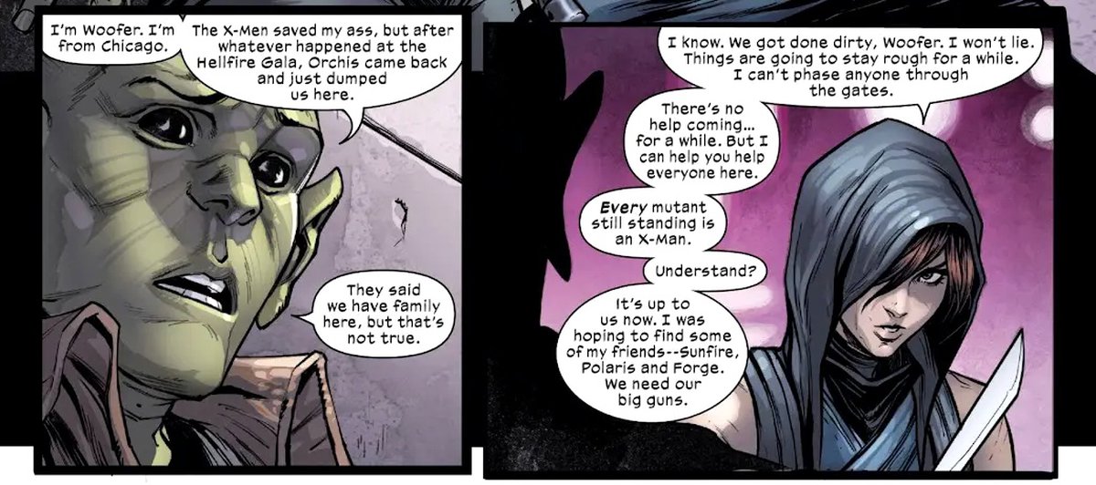 Так что, если Вуфер — Человек-Икс, то каждый персонаж-мутант, который появляется в Fall of X и помогает сражаться с Orchis, тоже считается Человеком-Икс. Это огромный список персонажей. Но если вы хотите просто считать их почетными мутантами, это тоже нормально.