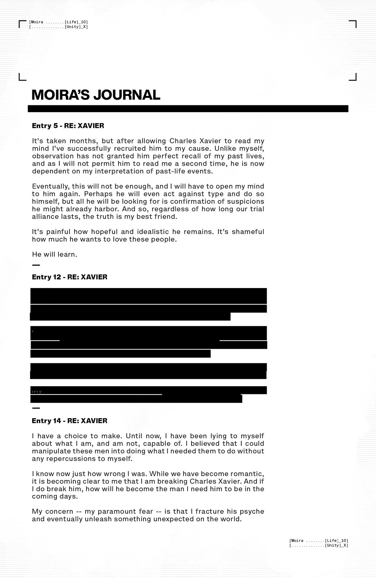 AIPT: Сокрытие текста ещё никогда не было таким крутыми. Затем фанат Алекс Прайор спросил: была ли запланированная история, которая бы ответила, почему у Мойры были дневники Судьбы в конце X-Men #20?