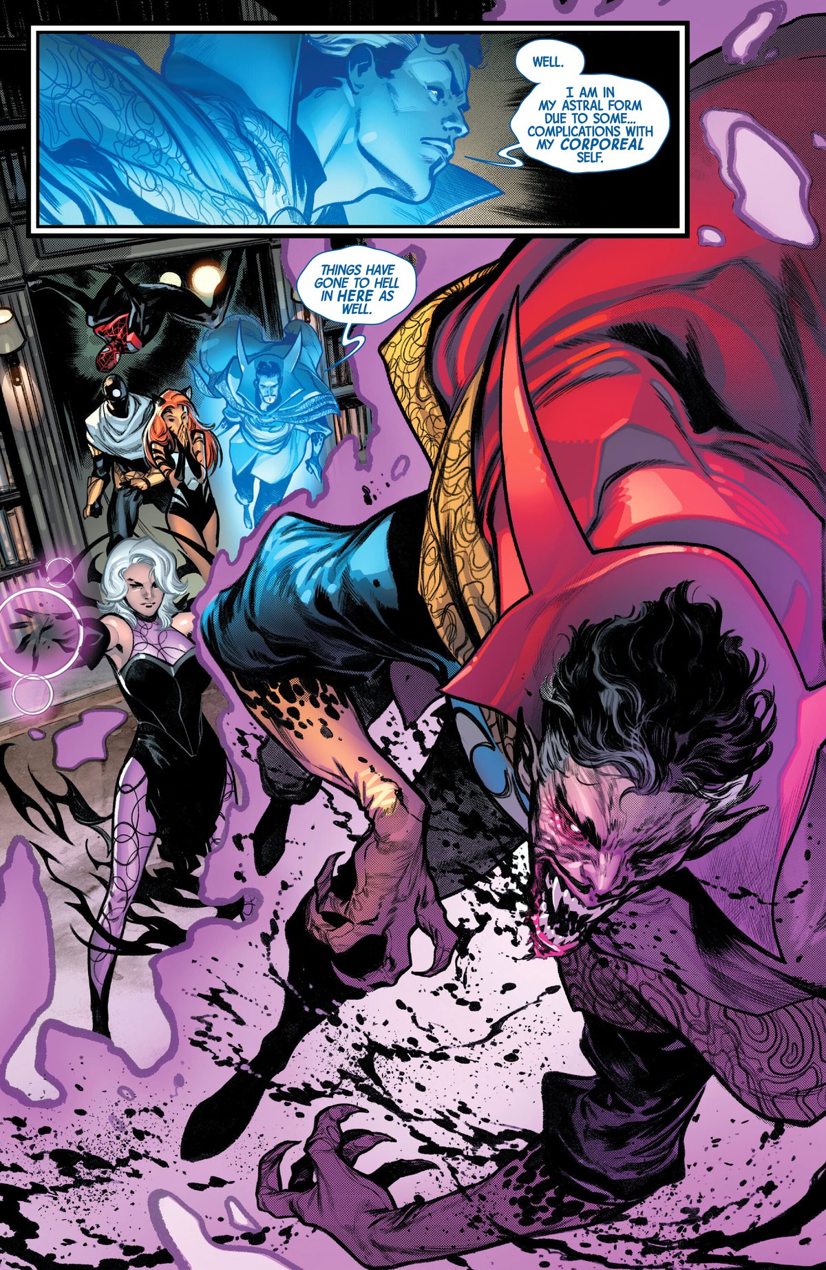 Казалось бы, героям нужно звать на помощь Доктора Стрэнджа, его магические навыки помогут справится с напастью. Однако враг тоже подумал об этом. Стивен также был обращён в вампира. Жена смогла вытащить из него астральное тело, чтобы он мог быть хоть как-то полезен.
