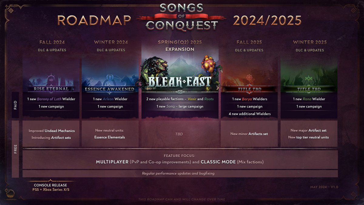 Релиз дополнение Bleak East пока запланирован на второй квартал 2025 года. Дополнение введет в Songs of Conquest большую кампанию и пару играбельных фракций.