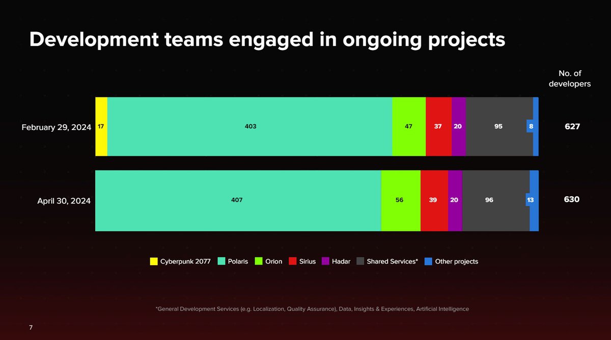 - Больше всего сил сейчас брошено на новую часть The Witcher, команда Orion, сиквела Cyberpunk 2077, более чем в 7 раз меньше.