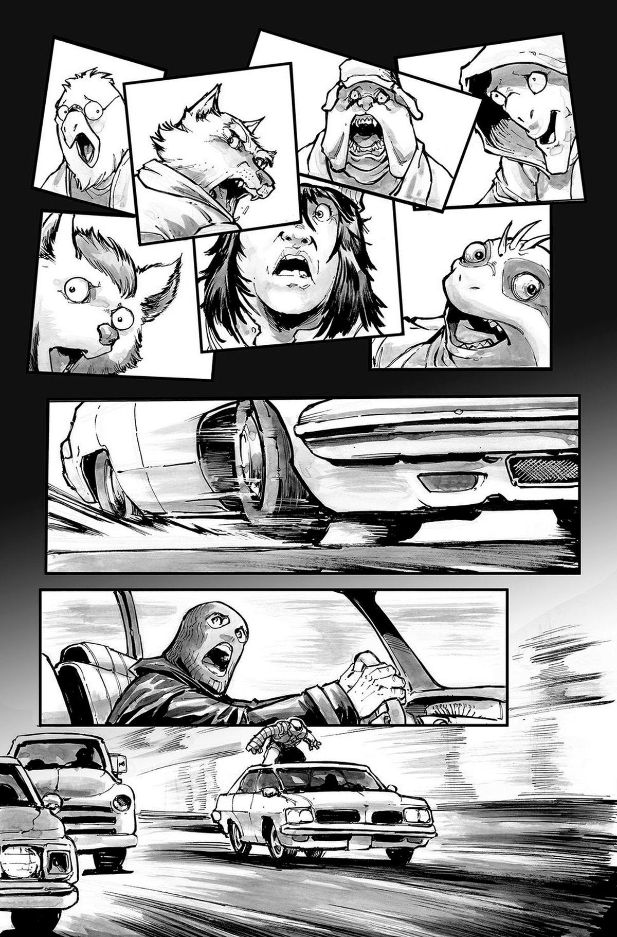 Феро Пе: О! В каком-то смысле чувствуется хорошо, ха-ха-ха. С тех пор, как я начал работать с Черепашек-ниндзя в The Armageddon Game: Opening Moves, у меня были комиксы со многими персонажами на каждой панели: от трицератонов, утромов, буйных мутантов из района Мутантов, не только четырех черепах, но и ложных четырёх черепах.