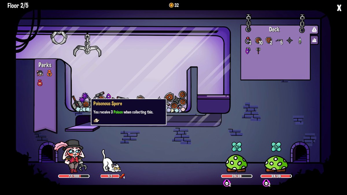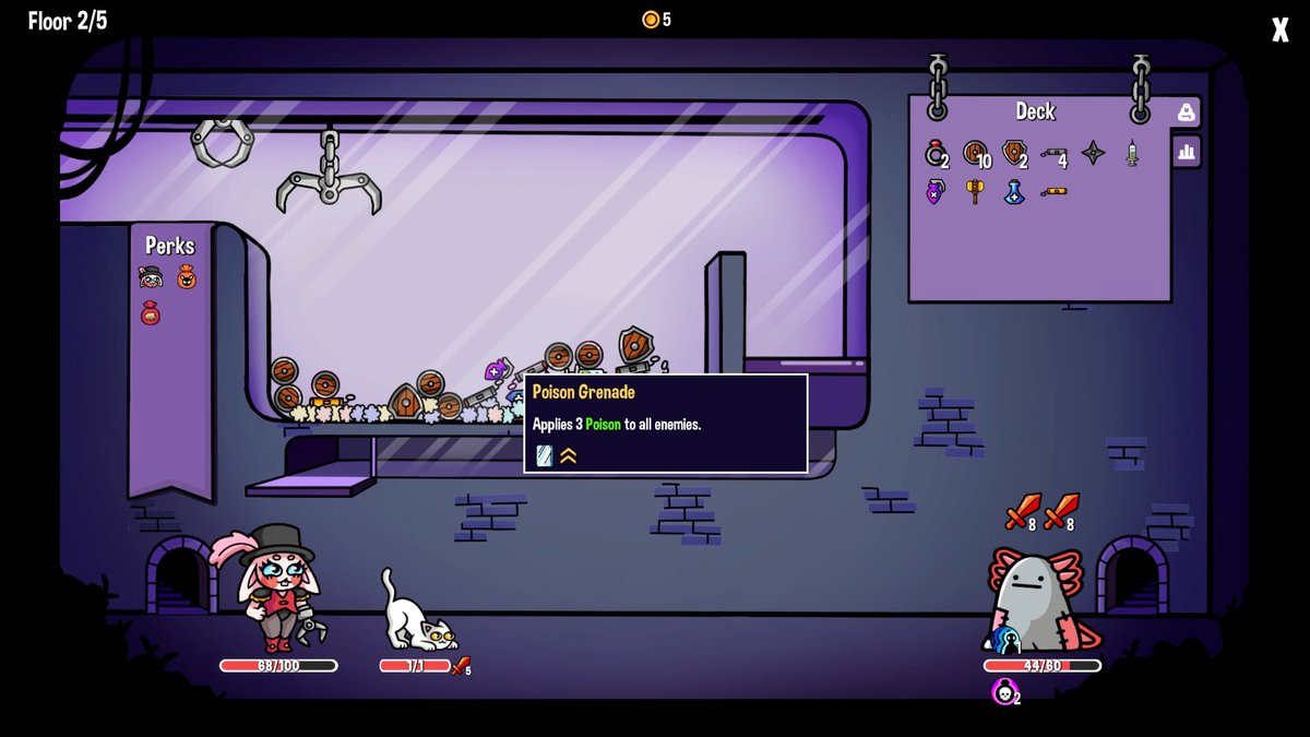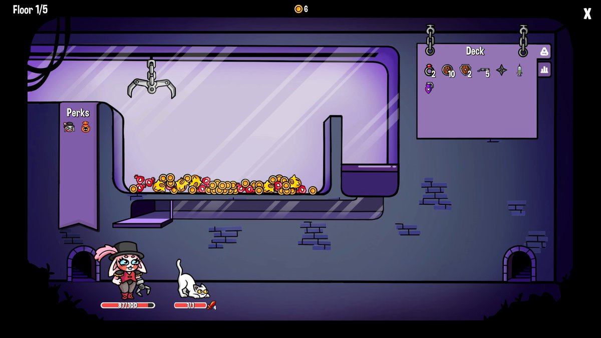 Например, если пройти за Фелину, то появится клетка с её кошкой, так зверюшку сможет вызывать и другой герой на 3 хода. А успешный ран за Берни откроет перк, дающий бонусную хваталку в комнату с монетками и зельями здоровья.