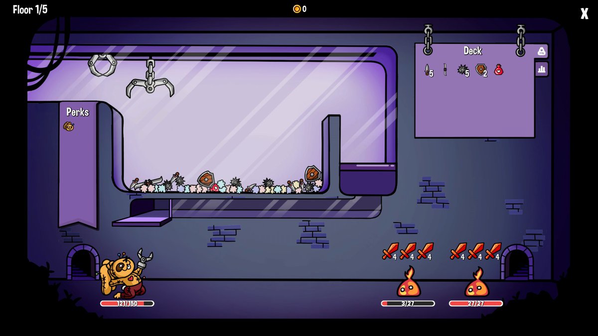 Клешнякула или Клокула - это смесь слов Claw и Dracula. Наш вампир лечится, когда атакует, в размере 10% от нанесённого урона. Однако на него нельзя навесить защиту. Даже не пытайтесь подбирать щиты, бесполезно. Их в стартовую колоду даже не засунули, но, к сожалению, после боя могут предложить в качестве случайной награды.