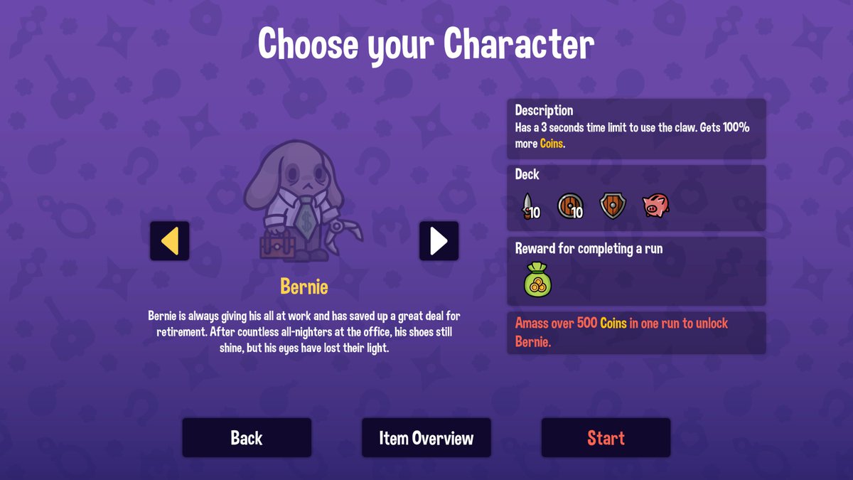 Последний, Бёрни, считает, что время - деньги. Он собирает на 100% монет больше, но у него есть только 3 секунды, чтобы подобрать что-то каждой клешнёй из автомата.