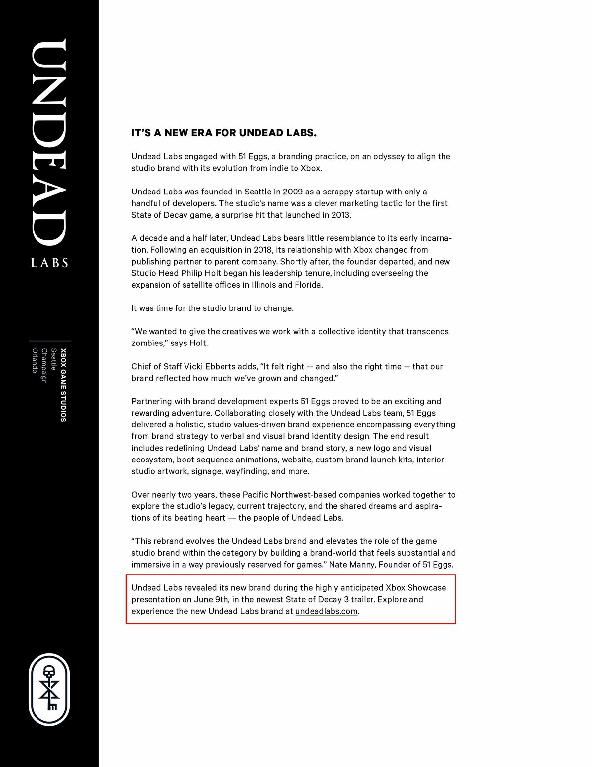 В документе не упоминаются какие-либо подробности ролика. Зато стало известно, что Undead Labs получит новый логотип: разработчики задумали обновить стиль студии.